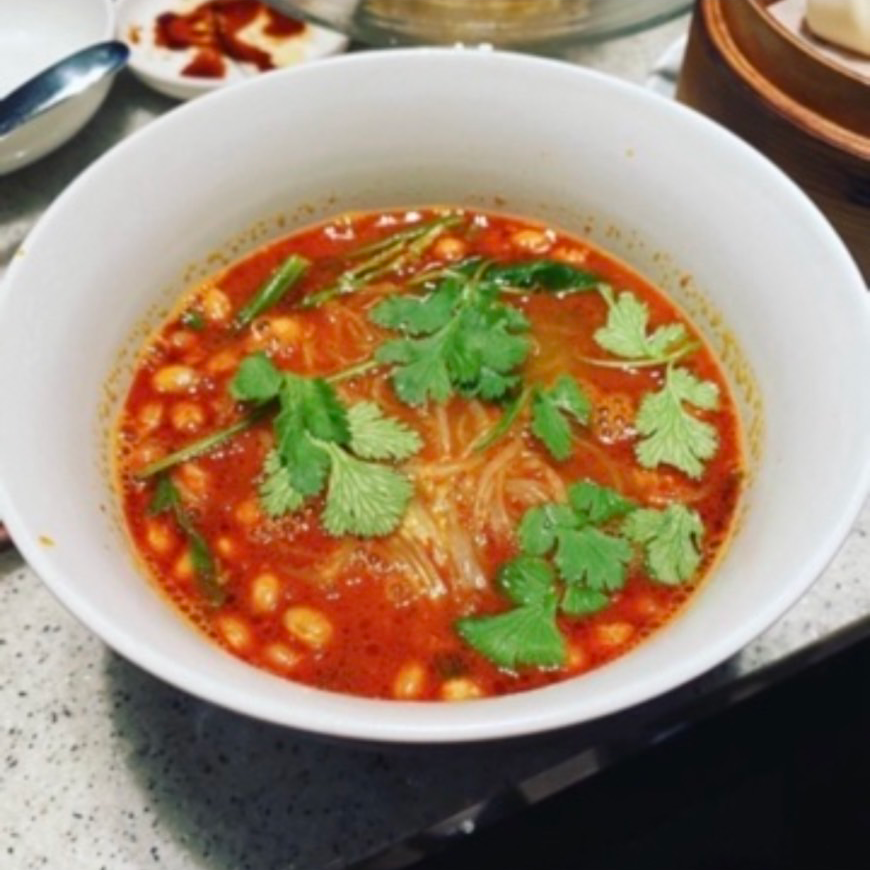 ピリッとした麻辣スープに春雨が絡み、パクチーや各種野菜、肉が加わることで、病み付きになる味わいを生み出します。